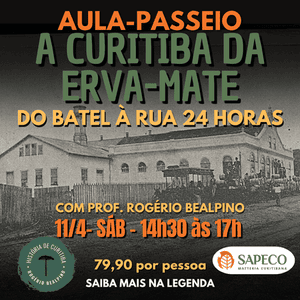 AULA-PASSEIO A CURITIBA DA ERVA-MATE: DO BATEL À RUA 24 HORAS - 11 DE ABRIL - SÁB - 14h30 às 17h