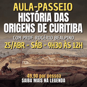AULA-PASSEIO HISTÓRIA DAS ORIGENS DE CURITIBA - 25 DE ABRIL - SÁB - 9h30 às 12h