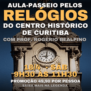 AULA-PASSEIO PELOS RELÓGIOS DO CENTRO HISTÓRICO DE CURITIBA -18 DE ABRIL - SÁB - 9h30 às 11h30