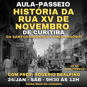 AULA-PASSEIO HISTÓRIA DA RUA XV DE NOVEMBRO DE CURITIBA - 24 DE JANEIRO - SÁB - 9h30 às 12h