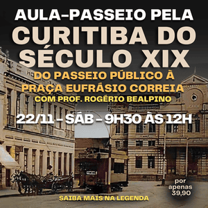 AULA-PASSEIO PELA CURITIBA DO SÉCULO XIX - 22 DE NOVEMBRO - SÁB - 9h30 às 12h