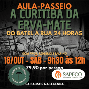 AULA-PASSEIO A CURITIBA DA ERVA-MATE: DO BATEL À RUA 24 HORAS - 18 DE OUTUBRO - SÁB - 9h30 às 12h