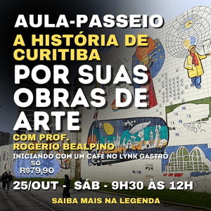 AULA-PASSEIO A HISTÓRIA DE CURITIBA POR SUAS OBRAS DE ARTE - 25 DE OUTUBRO - SÁB - DAS 9h30 às 12h
