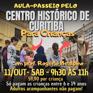 AULA-PASSEIO PELO CENTRO HISTÓRICO DE CURITIBA PARA CRIANÇAS - 11 DE OUTUBRO - SÁB - 9h30 às 11h