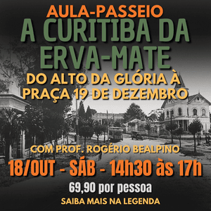 AULA-PASSEIO A CURITIBA DA ERVA-MATE: DO ALTO DA GLÓRIA À PRAÇA 19 DE DEZEMBRO - 18 DE OUTUBRO - SÁB - 14h30 às 17h